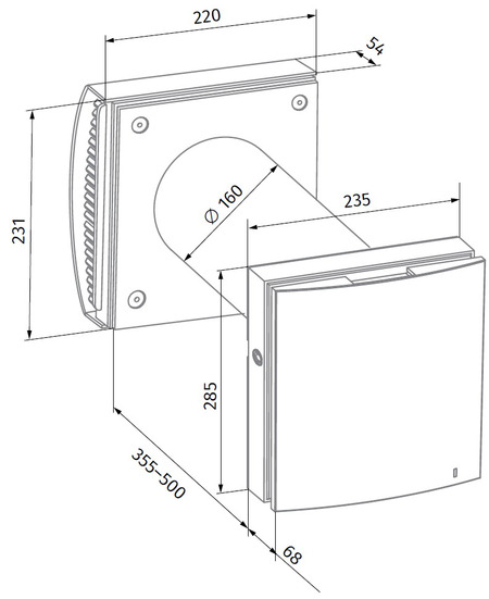 Данная модель обеспечивает повышенную производительность до 108 м3/ч в режиме вентиляции или 54 м3/ч в режиме рекуперации. Используется для монтажа в стену толщиной от 355 до 500 мм.