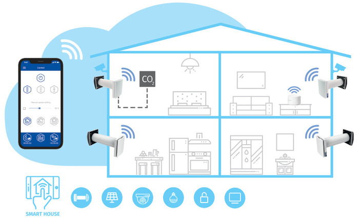 Модель оборудована WiFi модулем, возможно управление работой проветривателя с помощью смартфона или системы “умный дом”.