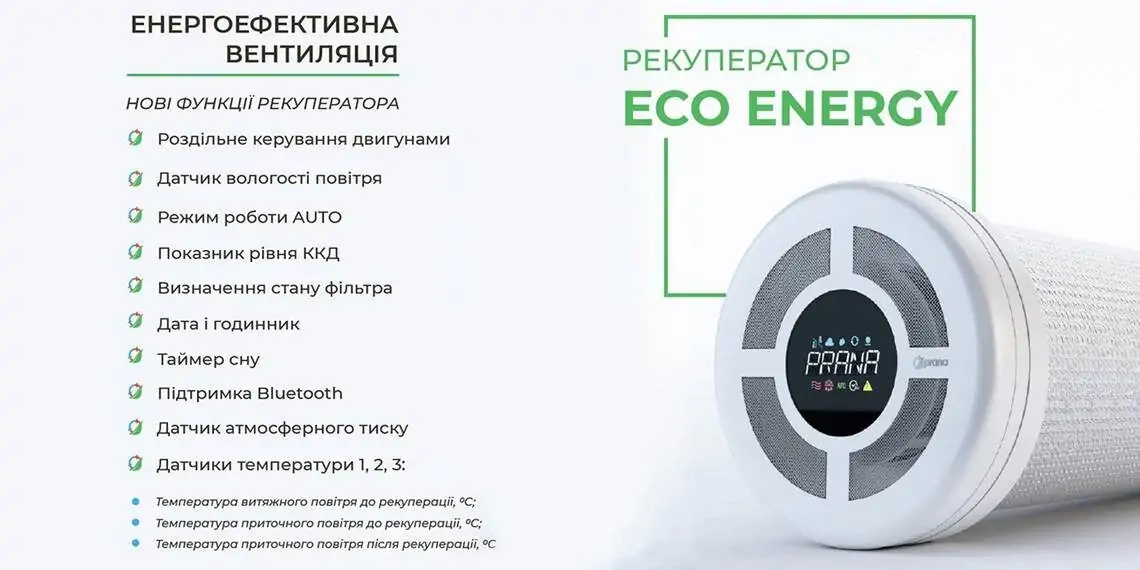 Для обеспечения здорового микроклимата в помещениях квартиры или пригородного дома отлично подойдет Prana 200G Eco Energy. Высокотехнологичное устройство защитит комнату от возможного появления грибка, плесени, аллергической пыли и постоянного запотевания окон.