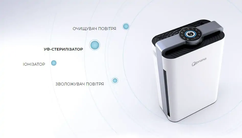 УФ-стерилизация с использованием УФ-света с длиной волны 365 нм обезвреживает различные бактерии. Бактерицидный ультрафиолетовый свет разрушает ДНК-связи внутри молекул вирусов, поэтому те теряют жизнеспособность и способность размножаться. В отличие от открытых бактерицидных ламп, вредных для сетчатки глаз, стерилизатор очистителя находится внутри корпуса, а свет не проникает в комнату. Ультрафиолетовый свет обеззараживает воздух и фильтры, а процесс обеззараживания безопасен для человека. УФ-стерилизатор очищает воздух, устраняет затхлые запахи, а также производит определенное количество анионов. Это сделает воздух свежим и позволит избежать распространения вирусов в воздухе или поверхностях.