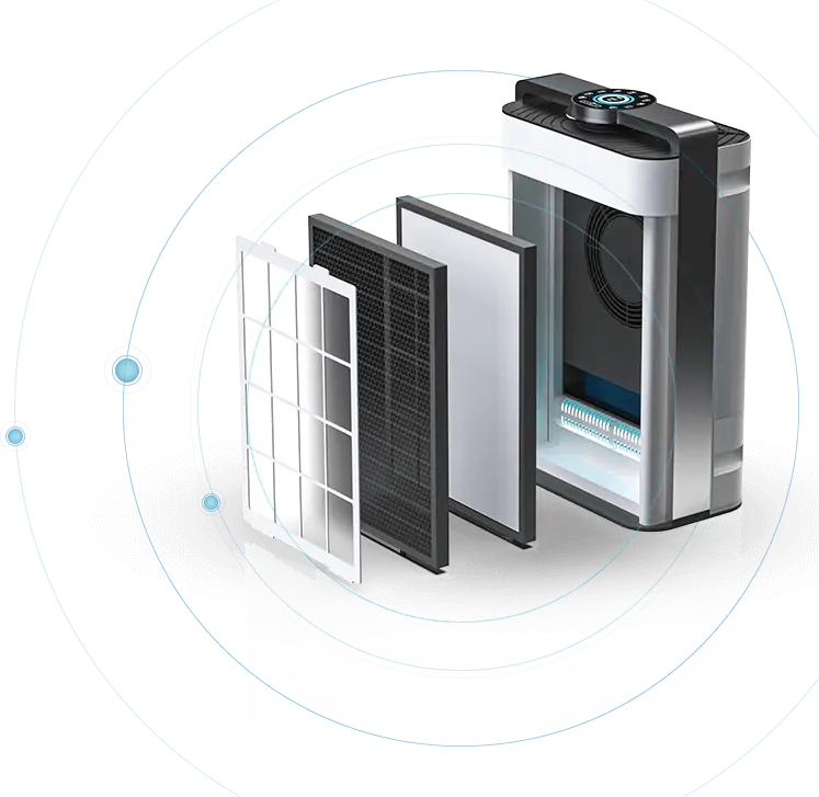 Эффективный НЕРА-фильтр фильтрует более 99% попадающих в воздух микробов, частиц дыма и пыли диаметром 0,3 мкм. Фильтруя дым, НЕРА-фильтр в сочетании с многофункциональным фильтром может фильтровать микроскопические частицы диаметром более 20 нанометров, включая бактериальную плесень, пыль, аллергены и некоторые вирусы.